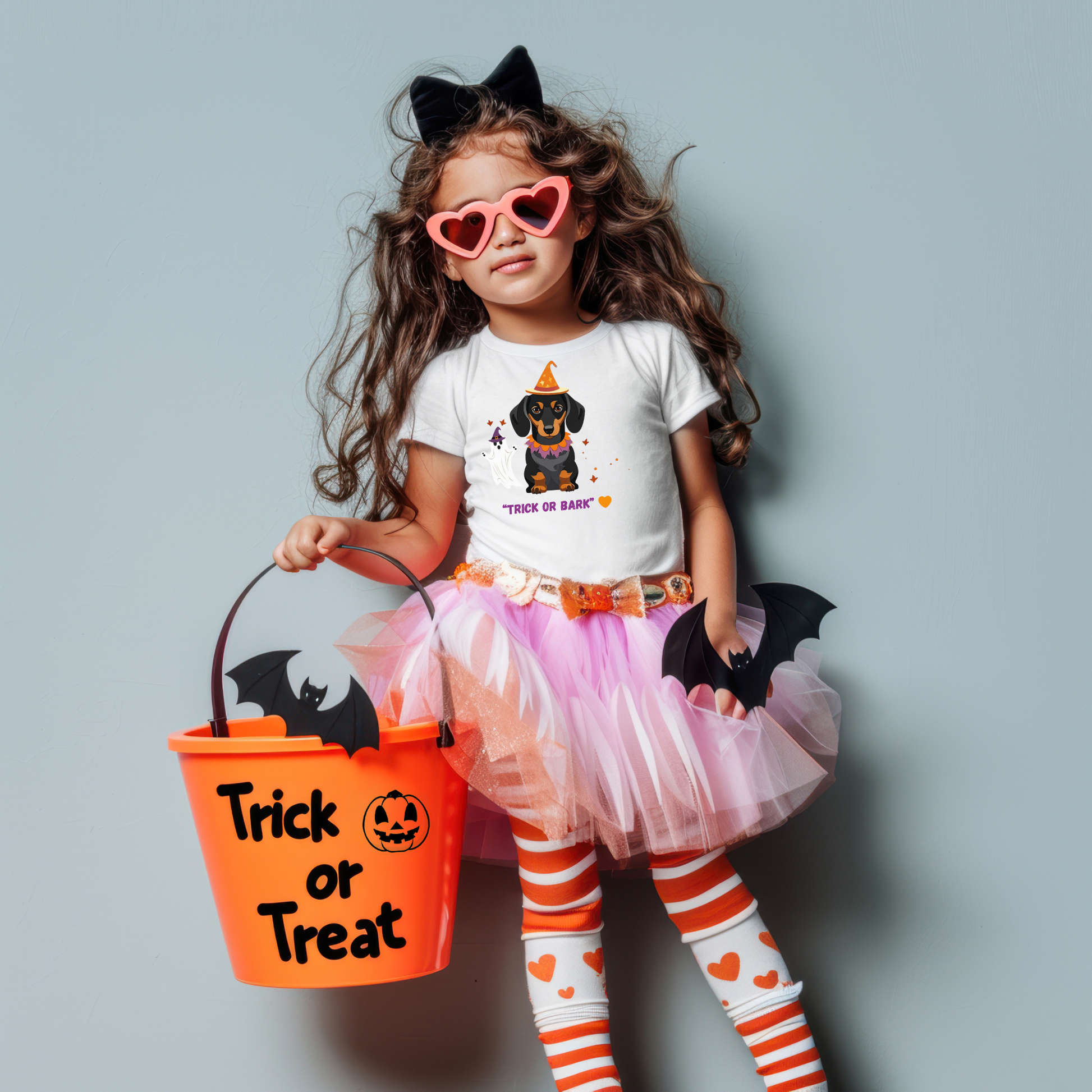 Kids Premium Bio T-Shirt mit Halloween Dackel Motiv "Trick or Bark"