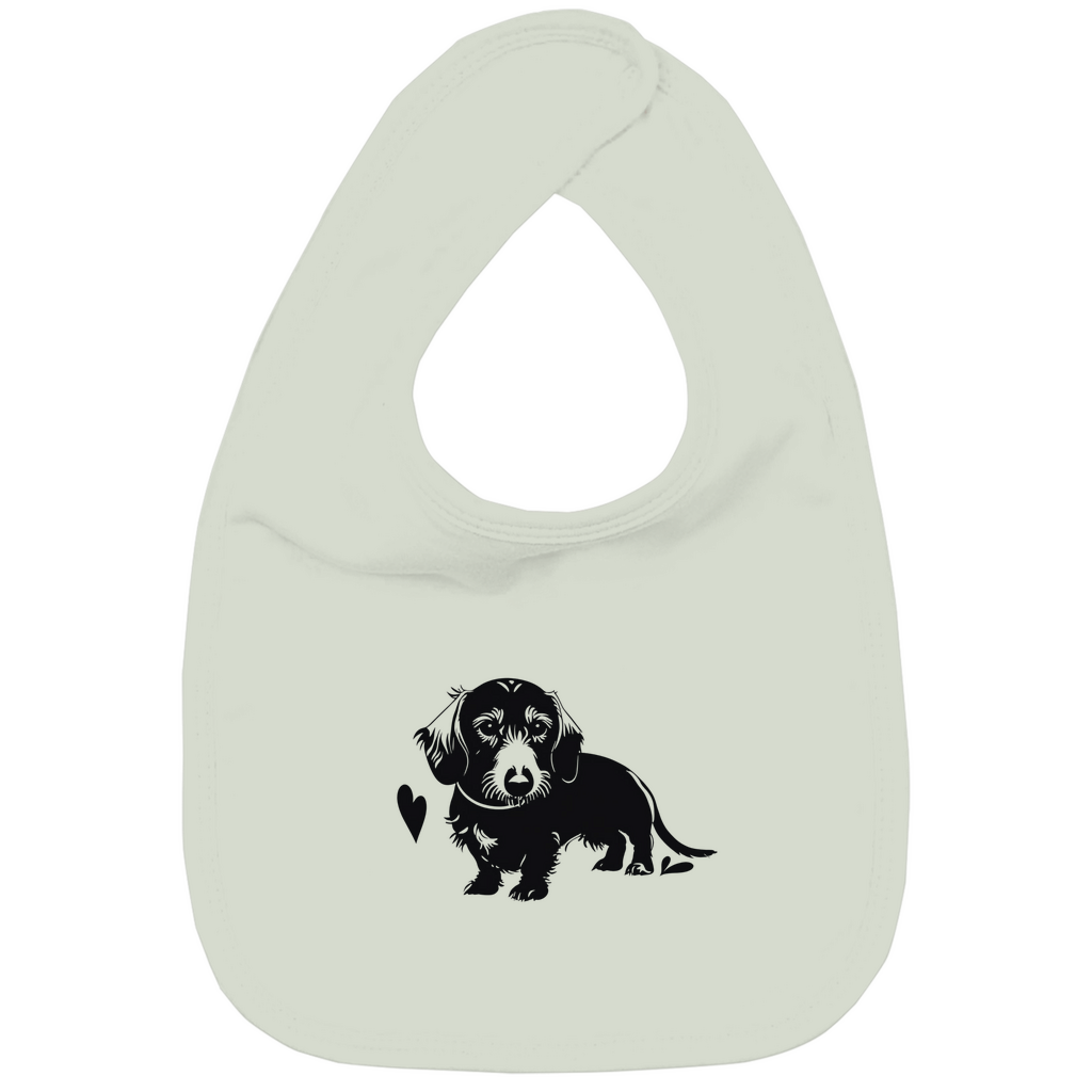 Das Kinder Lätzchen mit einem Dackel Print Motiv und Herzen!