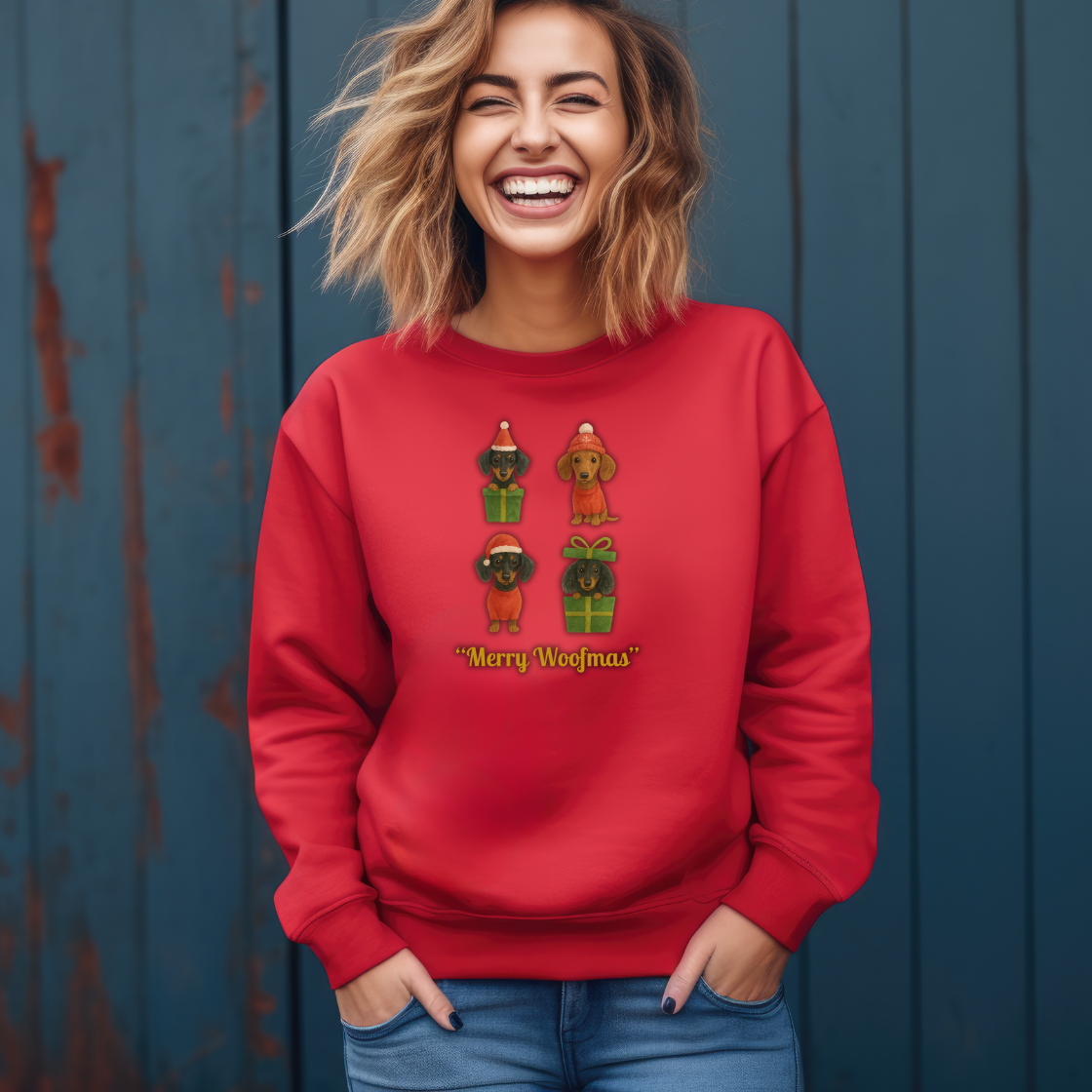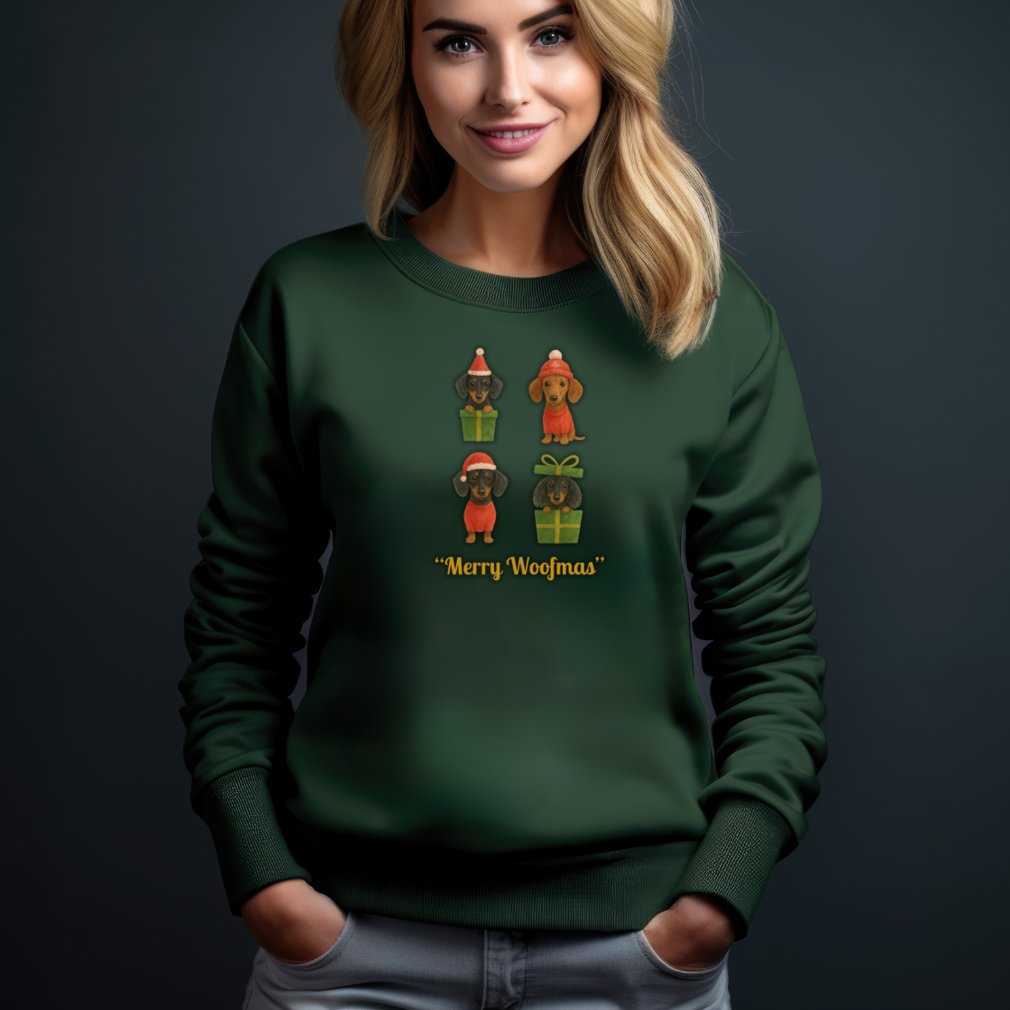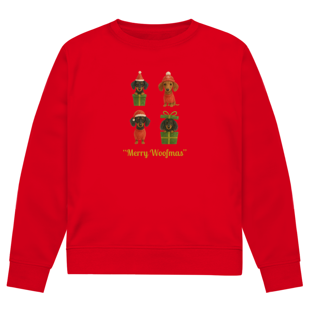 Unisex Premium Bio Sweatshirt mit Dackel Motiv "Merry Woofmas"