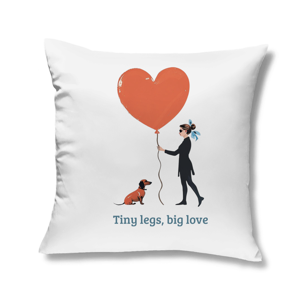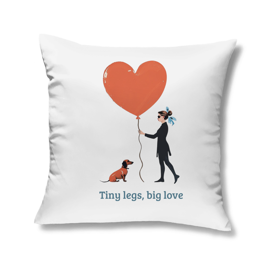Deko Zierkissen mit Dackel Couture Print Motiv einem Herz und Zitat tiny legs&big love