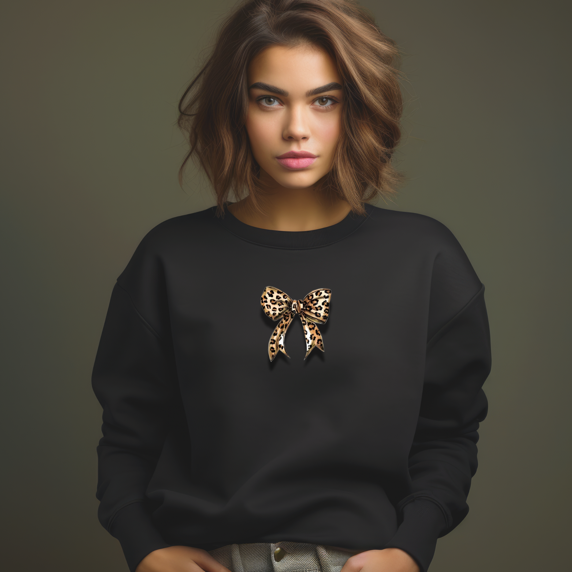 Ein echtes modisches Highlight diesen Herbst Winter - Leoparden Muster &Schleife zwei Trendthemen vereint in einem Print Motiv auf einem Basic Sweatshirt in 5 Farben.