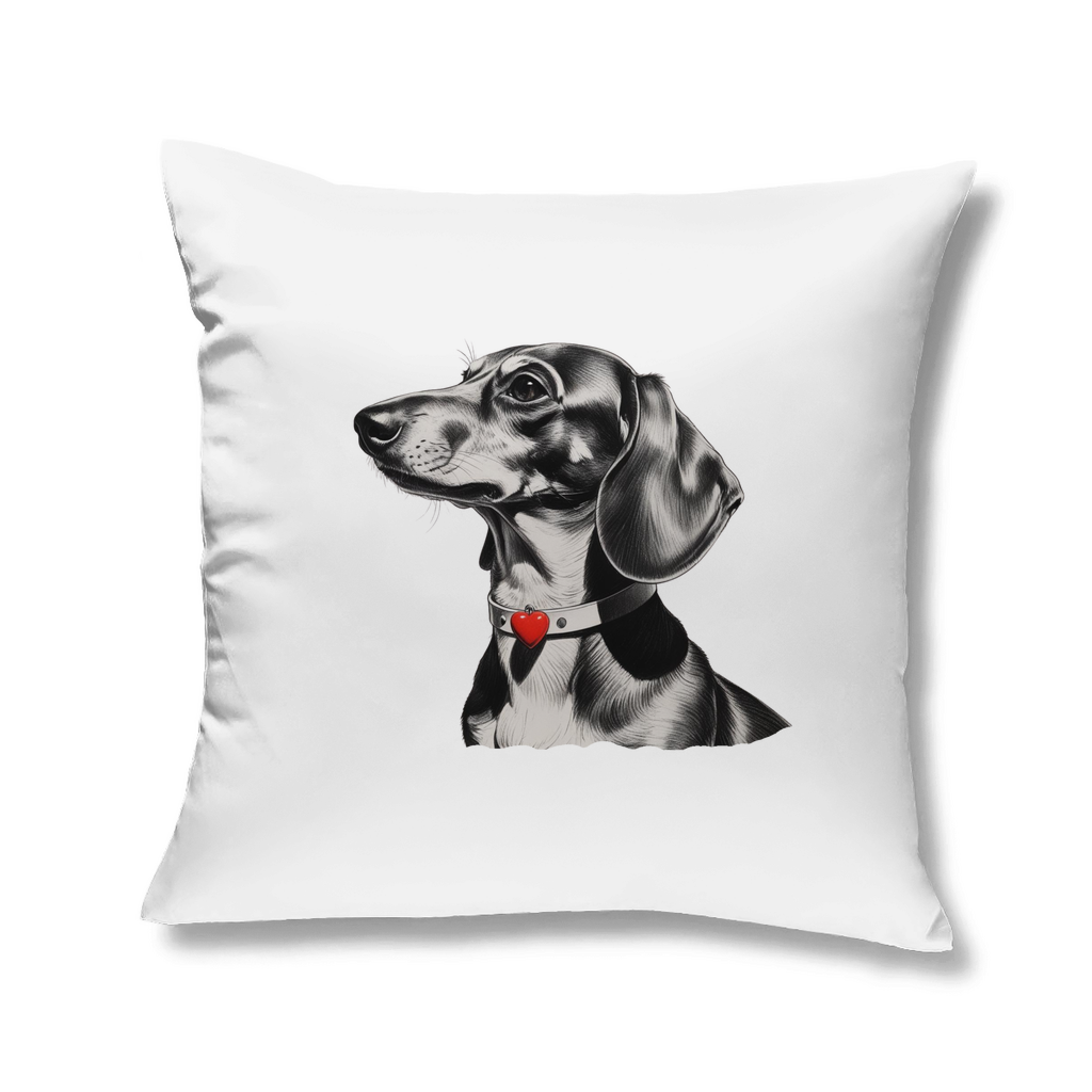 Ein tolles Geschenk für Ihre Dackel Fans und Hundeliebhaber - eine kunstvolle Dackel Kohle Zeichnung auf einem Kissen gedruckt! Individuell und ein echter Hingucker in jedem Wohn oder Schlafzimmer! Genieße himmlischen Komfort mit unserem hochwertigen weißen Sofakissen!