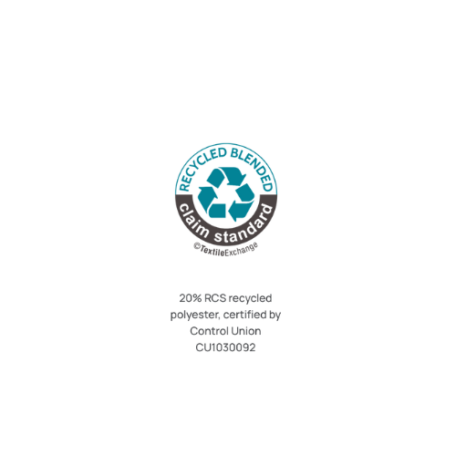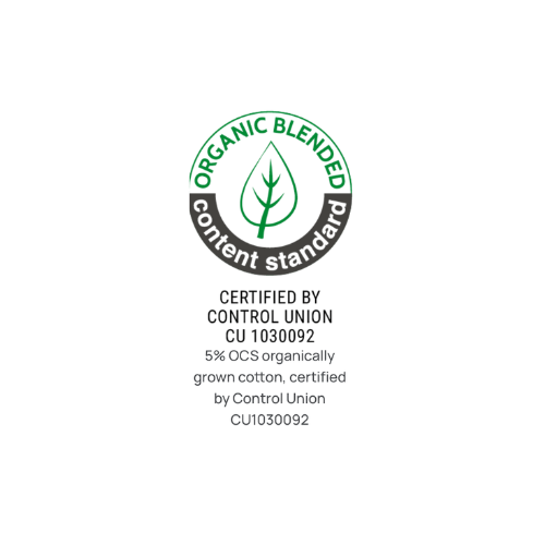 - Zertifizierte Mischung aus 80% ringgesponnener, gekämmter Bio-OCS- und In-Konversion-Bio-Baumwolle sowie 20% recyceltem Polyester - RCS zertifiziert.